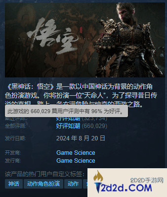 《黑神话》Steam评价数破66万!好评率重回96%