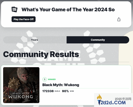 就在刚刚,IGN本部发起的年度投票中,《黑神话:悟空》支持率达到90%!遥遥领先!