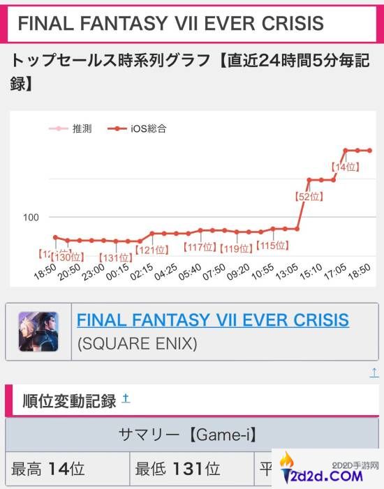 而在皮肤上线后,《FF7EC》在iOS日服商店的排名火速飙升,有网友晒出截图,显示游戏已经升到了第14位。