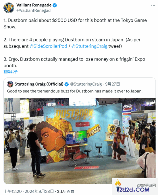 政确游戏《尘路之旅》在TGS花了2500美元:Steam却只有几名玩家