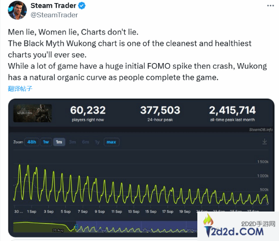 国外玩家分享《黑神话》在线人数曲线:完美且健康!