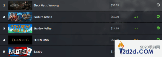 排名第二的是《博德之门3》,第三名是《星露谷物语》。