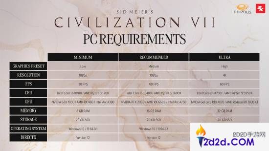 《文明7》完整PC配置公布 最低需GTX 1050显卡