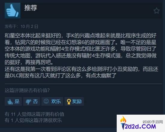 而给出好评的评测,也主要集中在DLC对地图的设计上,给人一种回归B社“传统大地图”的体验感受,希望《星空》之后的更新能再接再厉。