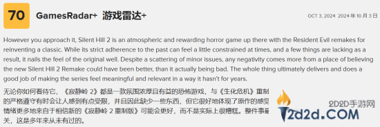 给出中评的70分的GamesRadar+认为,本作重塑了经典,但严格遵守原著的过去会让人觉得有所受限,缺少了某些东西。