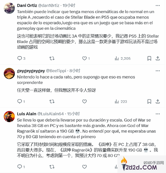 不过,也有玩家对较小的文件大小提出了不同的猜测:“这可能意味着游戏中的过场动画较少,类似于PS5上的《剑星》,该游戏更多依赖游戏玩法而不是动画。”有人将此与其他大作对比:“《战神》在PC上占用了38 GB,而其规模要比《寂静岭2》大得多。不过《战神:诸神黄昏》却跃升至190 GB,令人费解。”