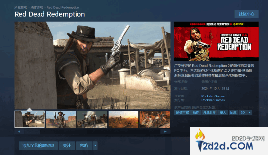 《荒野大镖客:救赎》Steam页面上线:包含资料片