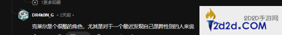玩家表示游戏中克莱尔的形象设计并没有凸显社会对变性少数群体的刻板印象,其外观看上去就是一个正常的普通人,甚至很多玩家都不知道克莱尔是变性人。不少玩家也呼吁更多的游戏作品能像《2077》学习,以更自然的方式塑造角色,而不是将游戏中的LGBT角色“妖魔化”。