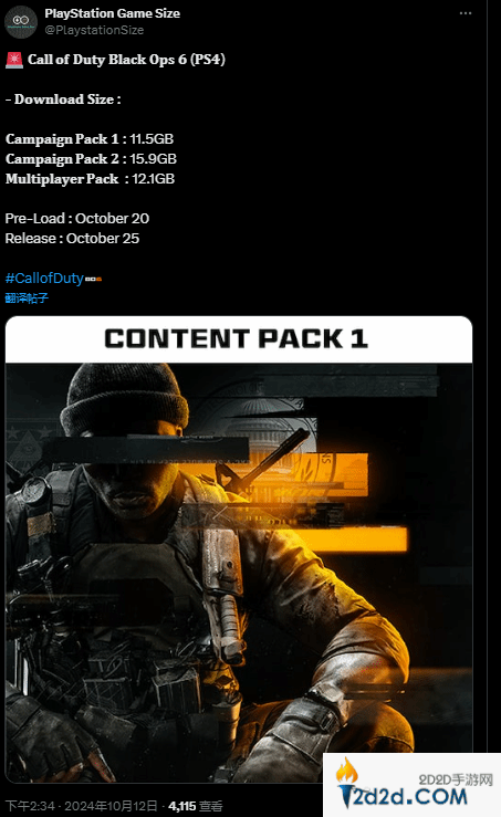 仅约40G?PS4平台《使命召唤21》预载信息公布