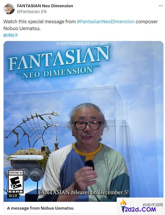 《FANTASIAN Neo Dimension》将在今年12月发售,近日传奇作曲家植松伸夫宣布,这款游戏将会是他最后一个游戏作曲项目。“这是我作为游戏音乐作曲家的最后一个项目”,植松伸夫在一段简短的视频中说道。