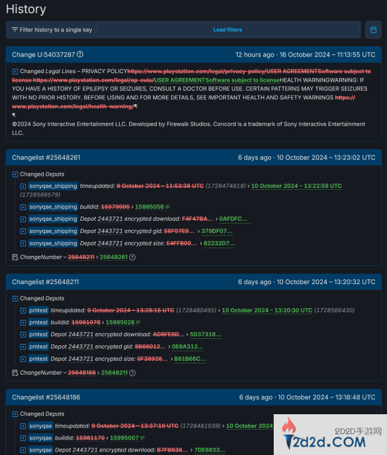 根据Steam数据库的数据显示,从9月30日开始,《星鸣特攻》在Steam上连续进行了大量更新,更新频率每天大约有六次左右,持续到10月10日。这些更新虽然内容对普通玩家不太容易理解,但出现了“playtest”(试玩测试)、“pmtest”(项目测试)以及“sonyqae”(推测为“索尼质量保证工程师”)等字眼,这似乎表明游戏的某种内部测试正在进行。