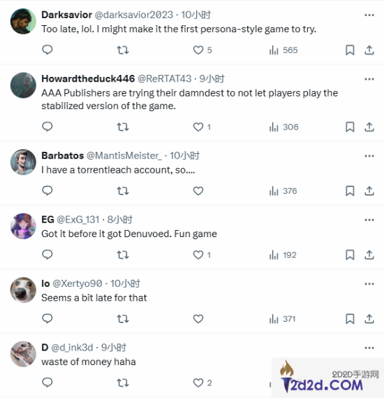 推文随即引发玩家热议,有玩家用梗图调侃了Atlus的这一行为,更多的玩家则表示Atlus此举已经太晚,颇有“亡羊补牢”的意味。