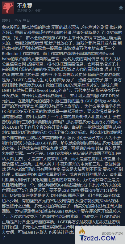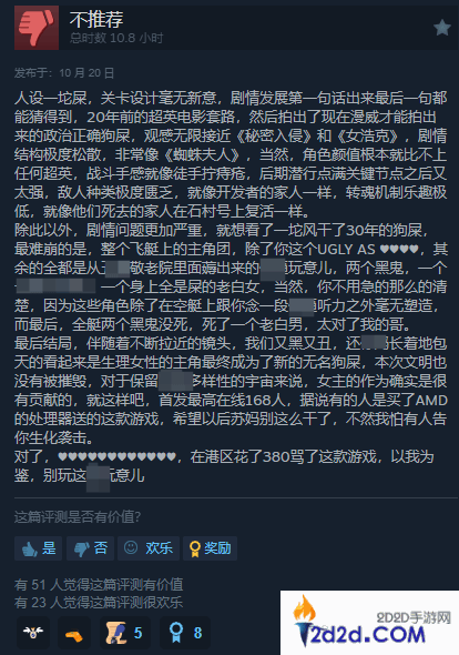 在中文区里新增了部分差评评价,新给出差评的玩家表示《无名九使:觉醒》的人设非常糟糕,关卡设计毫无新意,剧情发展也很容易让自己猜到,游戏里包含的DEI元素让自己非常恶心,在其他语言的评论里也是如此。