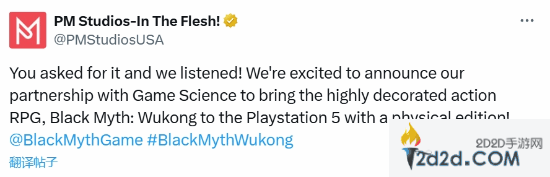PM Studios通过其社交媒体账号发文表示:“你们的呼声我们听到了!我们很高兴宣布与Game Science的合作,推出备受期待的动作RPG《黑神话:悟空》PS5实体版!”同时公司确认:“游戏将包含实体光盘,兑换码则用于豪华版升级。”