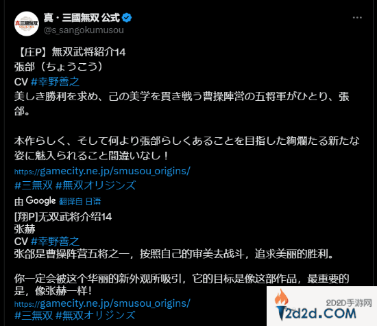 点击下载今日,《真三国无双:起源》官方在推特发布了“曹操阵营”无双武将张郃的人物介绍,在本作中依旧由幸野善之担任配音。