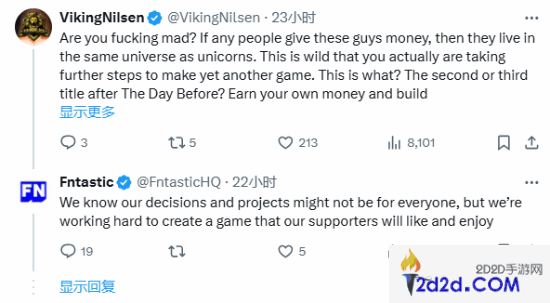 在评论区下,有玩家表示怀疑与愤怒。对此,Fntastic表示:“我们知道我们的决定和项目可能无法让所有人满意,但我们正在努力打造一款让支持者喜欢并享受的游戏。”