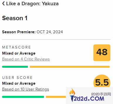 而从其他媒体的打分来看,或许质疑IGN的网友有些冤枉它了。截止发稿,本剧在M站仅获得48分,观众评分5.5。