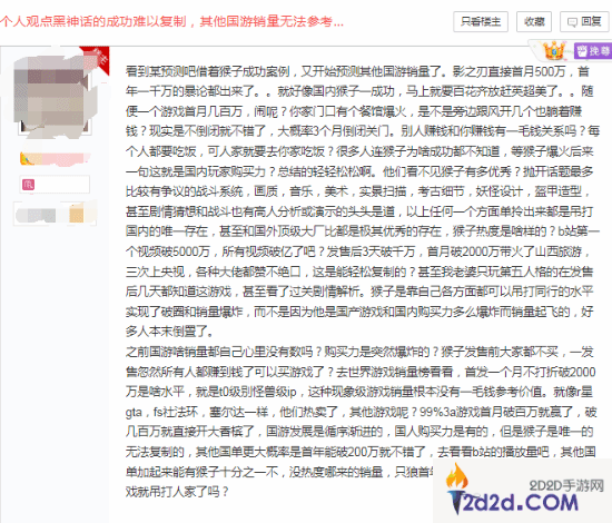 评论区有玩家对此持反对意见,认为《黑神话》基数太大,其他国产3A游戏即使只吃到它三分之一的红利也能过得很好,毕竟很多人借此机会升级了配置,放着吃灰太可惜了。