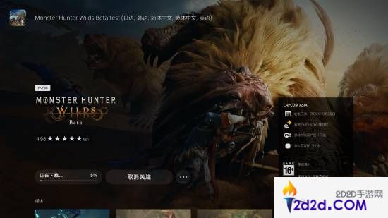 《怪物猎人:荒野》公开测试现已在PS5平台开放预下载,仅限拥有PS Plus的用户进行下载,并可以在10月29日11点抢先游玩。下载测试版无需预购游戏,需要预留至少16.51GB的空间。