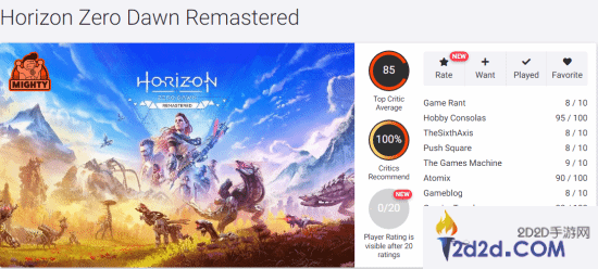 《地平线:零之曙光复刻版》媒体评分已解禁,截止发稿,本作在OpenCritic评分网获得85媒体均分(共收录28家媒体评测),媒体推荐度高达100%
