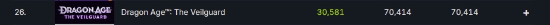 然而,值得注意的是,尽管首发表现强劲,截至游戏解锁16小时后,其在线玩家人数已经跌出了Steam在线玩家榜单的前二十名。目前,《龙腾世纪:影障守护者》的在线玩家数降至30,581人,排名第26。