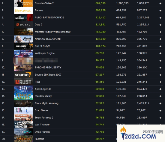 相比之下,《黑神话:悟空》目前的在线玩家数为52,572人,排名第15,而《博德之门3》的在线玩家数则为27,468人,排名第29。