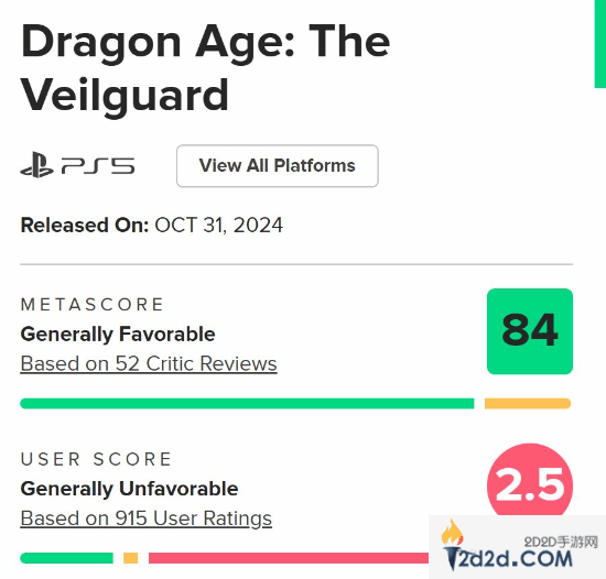 玩家媒体分歧大!《龙腾世纪4》M站用户评分降至2.5
