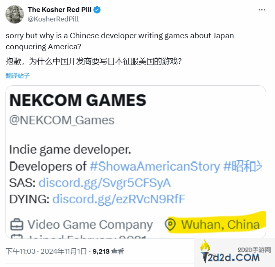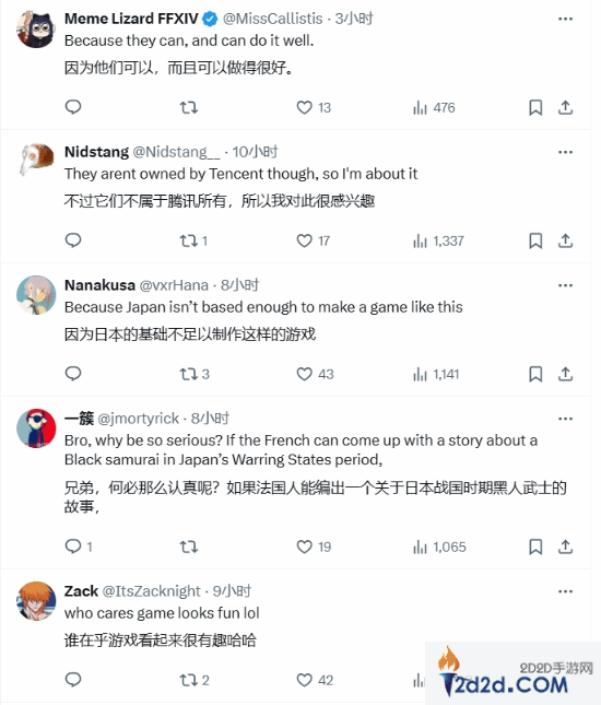 与此同时,也有网友提出疑问:“抱歉,但为什么一个中国开发团队要制作关于日本征服美国的游戏?”对此,评论区的回应十分热烈:“因为他们可以,并且做得很好。”“因为日本没有足够的勇气去做这样一款游戏。”“兄弟,为什么要这么敏感?如果法国人能想出一个关于日本战国时期黑武士的故事……”