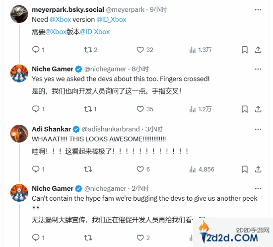 在评论区中,有网友表达了对XBOX版本的期待,留言道:“需要XBOX版本!”对此,Niche Gamer 回复称:“是的,我们也向开发者询问了这个问题。希望一切顺利!”
