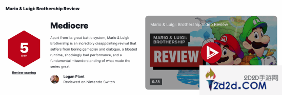 《马里奥与路易吉RPG:兄弟齐航》翻车了?IGN仅打出5分
