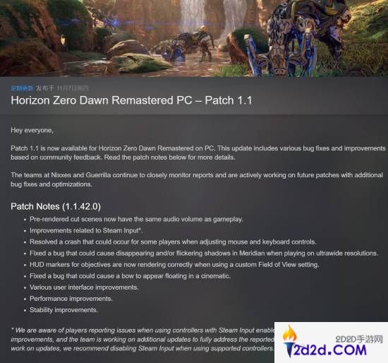 Nixxes Software发布了《地平线:零之曙光复刻版》PC版的首个补丁,它修复了游戏的一些错误,并带来了一些性能和稳定性改进。