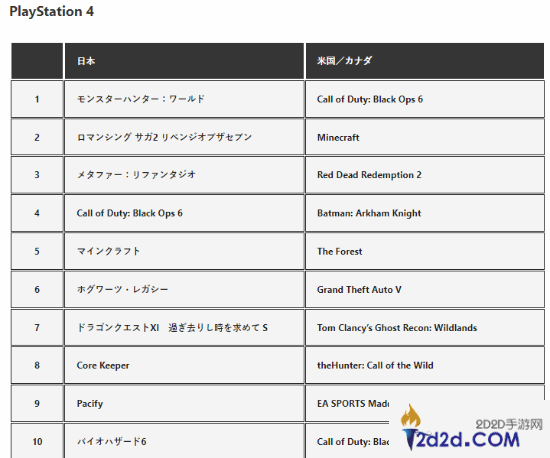 美服PS4游戏下载榜前三分别是:《使命召唤21黑色行动6》《我的世界》《荒野大镖客:救赎 2》
