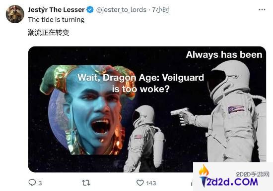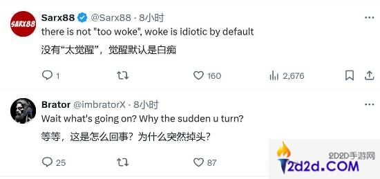 有玩家表示,风向改变得如此之快都令人有些猝不及防,“有意思的是,我一直被告知只有愤怒傻瓜才觉得这游戏‘觉醒’,现在发生了什么?”,“等等,这是怎么回事?为什么突然掉头了”。