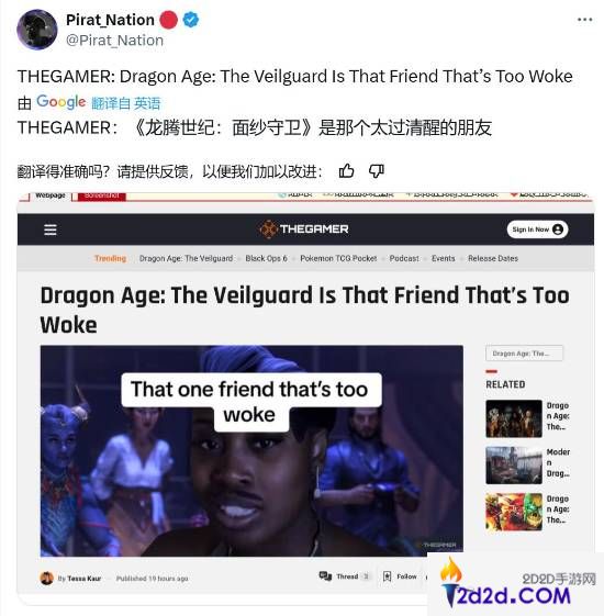 外媒称《龙腾世纪4:影障守护者》太过觉醒引热议 网友:风向变了