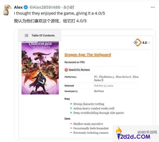也有人指出,Thegamer之前给《龙腾世纪4》打出了4.0/5分的评价,看起来他们还是挺喜欢这游戏的。网友调侃:“30天的付费营销结束了,我想现在可以说出他们想要什么了。”