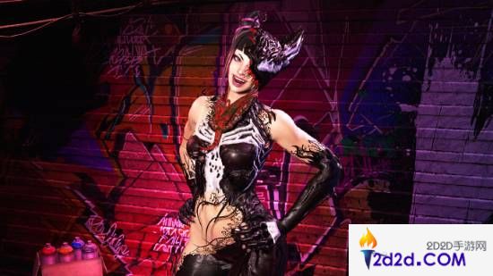 黑色共生体覆盖在韩蛛俐的部分肌肤上,流畅的质感和细腻的纹理展现出毒液独特的视觉冲击力,与韩蛛俐本身的反派气质完美融合。整个设计不仅邪魅狂野,还增添了一丝性感与危险的魅力。