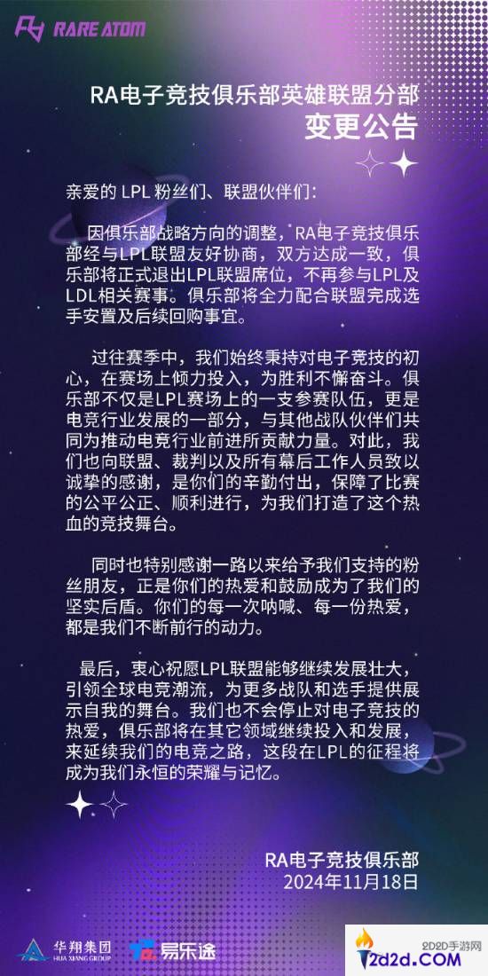 RA官方发布的公告: