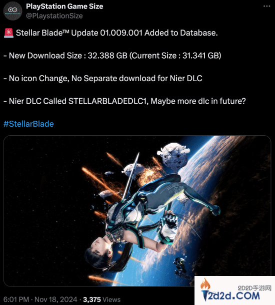 该版本没有图标变化,也没有单独为《尼尔》DLC提供下载。《尼尔》DLC命名为 STELLARBLADE DLC1,或许未来还会有更多DLC推出。