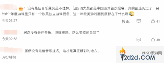 该消息也迅速登上微博热搜,引发热烈讨论。许多玩家盛赞《黑神话:悟空》为“国人骄傲”,认为其提名实至名归。不过,部分玩家也对游戏未能入围“最佳音乐”奖项表示遗憾,纷纷提到游戏中多段令人印象深刻的配乐和主题曲。尤其是像无头僧人的陕北说书等极具创意的音乐内容,曾令全球玩家惊艳。一些网友调侃称:“冯骥震怒,这么多精彩的歌词都白写了?”
