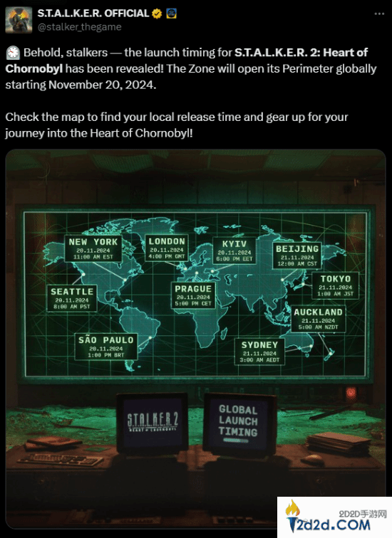 《潜行者2:切尔诺贝利之心》将于11月21日正式发售,同步加入XGP。官方公布了全球解锁时间,游戏将于北京时间21日凌晨12点正式解锁。