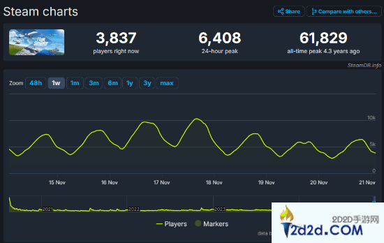 当然,目前正值《微软飞行模拟2024》的首发阶段,再加上之前提到的问题显然对游戏的表现造成了影响。随着补丁的逐步推出,在未来,玩家数量是否会显著增长,值得继续关注。