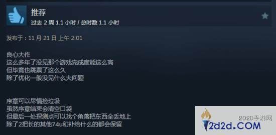 给出差评的玩家指出,游戏的优化问题一言难尽,祖传的各种Bug影响体验,一些关卡和地图设计容易劝退,建议等修复补丁上线再买。