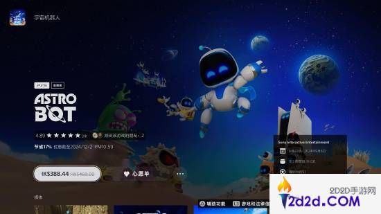 发售两个半月,PS5独占《宇宙机器人》随着黑五大促迎来首次打折。本作原价468港元,本次特卖-17%,优惠价388.44港元,力度并不算大。