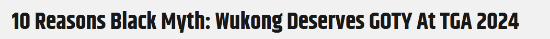 DEI外媒称《黑神话:悟空》值得年度最佳:曾因缺乏多样性给6分