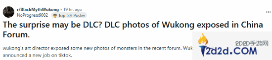 与此同时,消息也传到了Reddit论坛里,国外玩家也认为这或许与《黑神话:悟空》的DLC有关。有玩家表示自己并不着急,因为游戏才刚发售几个月,反观《艾尔登法环》花了两年时间才推出DLC,所以应该给游戏科学一些耐心。还有玩家说道:“我们会以天命人的身份回归吗?我想念我的猴子了。”“我真的希望官方能在TGA里宣布一些新消息。”