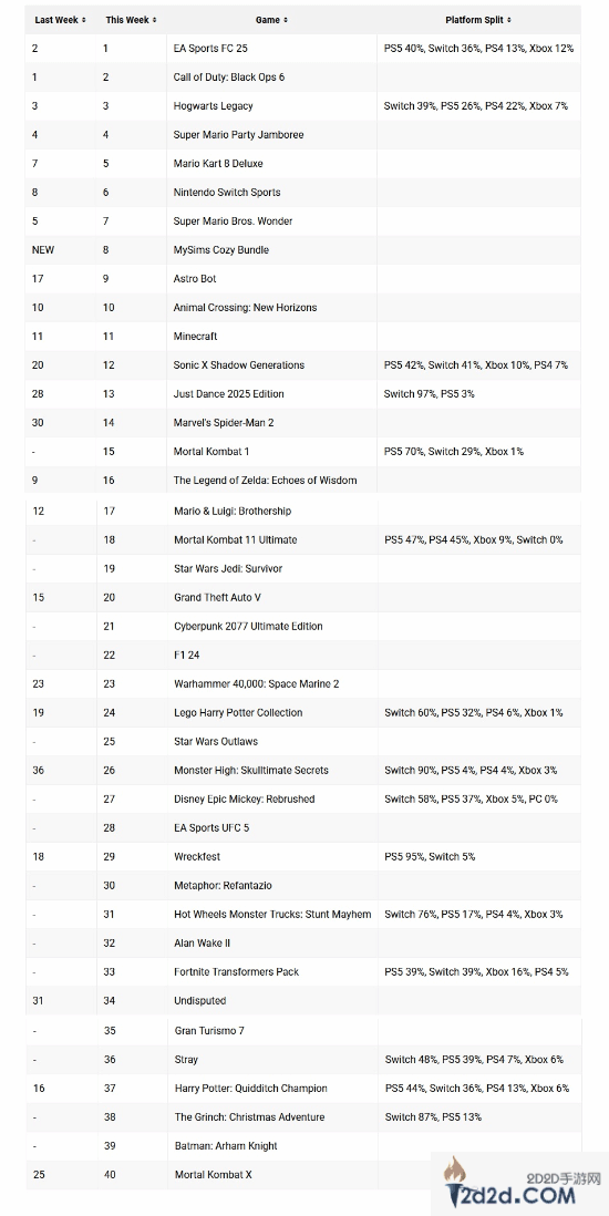 近日,英国发布了11月17日至23日期间的实体游戏周销榜,新排名出现了一些意外变化。