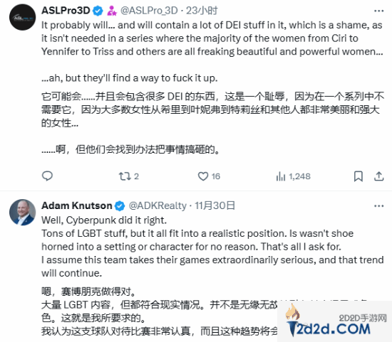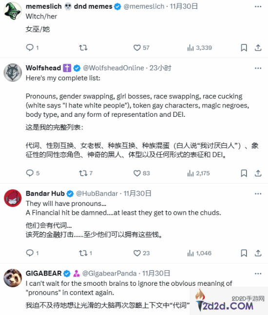 消息一出,前暴雪制作人、反觉醒急先锋@Grummz转发消息内容并表示:这太酷了!但是如果他有(多元化)代词的出现,我一定会选择退出不玩。