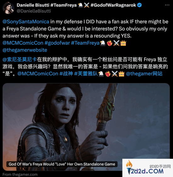 在伯明翰MCM动漫展的《战神》专题讨论会上,扮演芙蕾雅的丹妮尔·比苏蒂(Danielle Bisutti)表示,她愿意回归并参与以自己角色为主角的独立衍生作品。