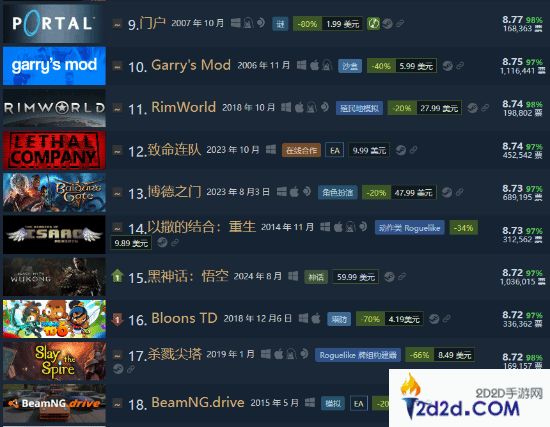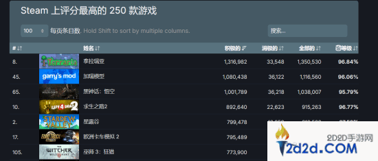 另据网站Steam 250数据,本作还成功上榜Steam史上最佳250部游戏阵容,并栖身前二十,在他之前的,有《星露谷》《传送门》《环世界》《博德之门3》《求生之路2》《哈迪斯》等经典佳作。