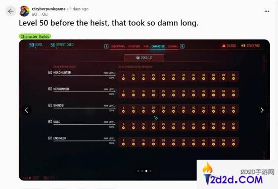 近日,Reddit一位玩家@uO__Ou 开启了一项特别的挑战,他打算在《赛博朋克2077》主线“偷货”进大厦前升满级。而因为不能通过主线、支线涨经验,这一挑战最终耗时40小时30分钟。